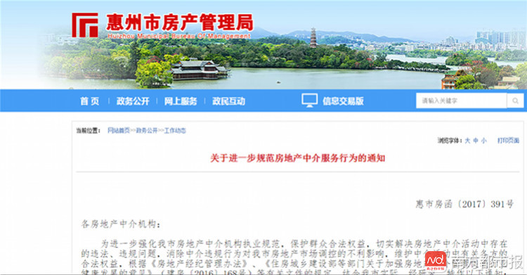 7月31日晚,惠州市房管局发布《关于进一步规范房地产中介服务行为的通知》,对于未竣工、未取得不动产权证的预售商品房,严禁中介机构以任何形式转让。与此同时,还首次严禁中介炒作房号、使用阴阳合同、操纵市场价格等行为,违者将严厉查处。